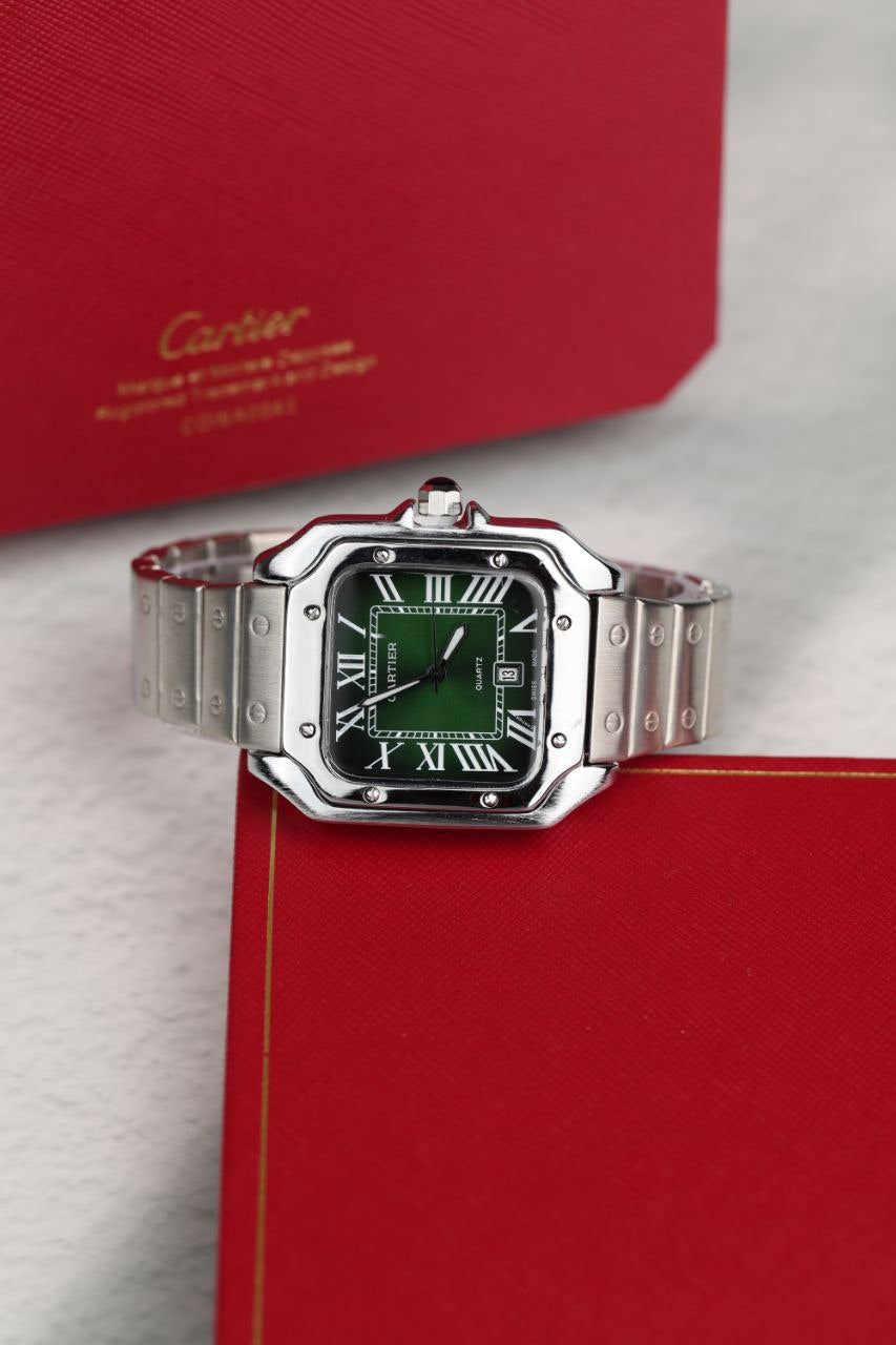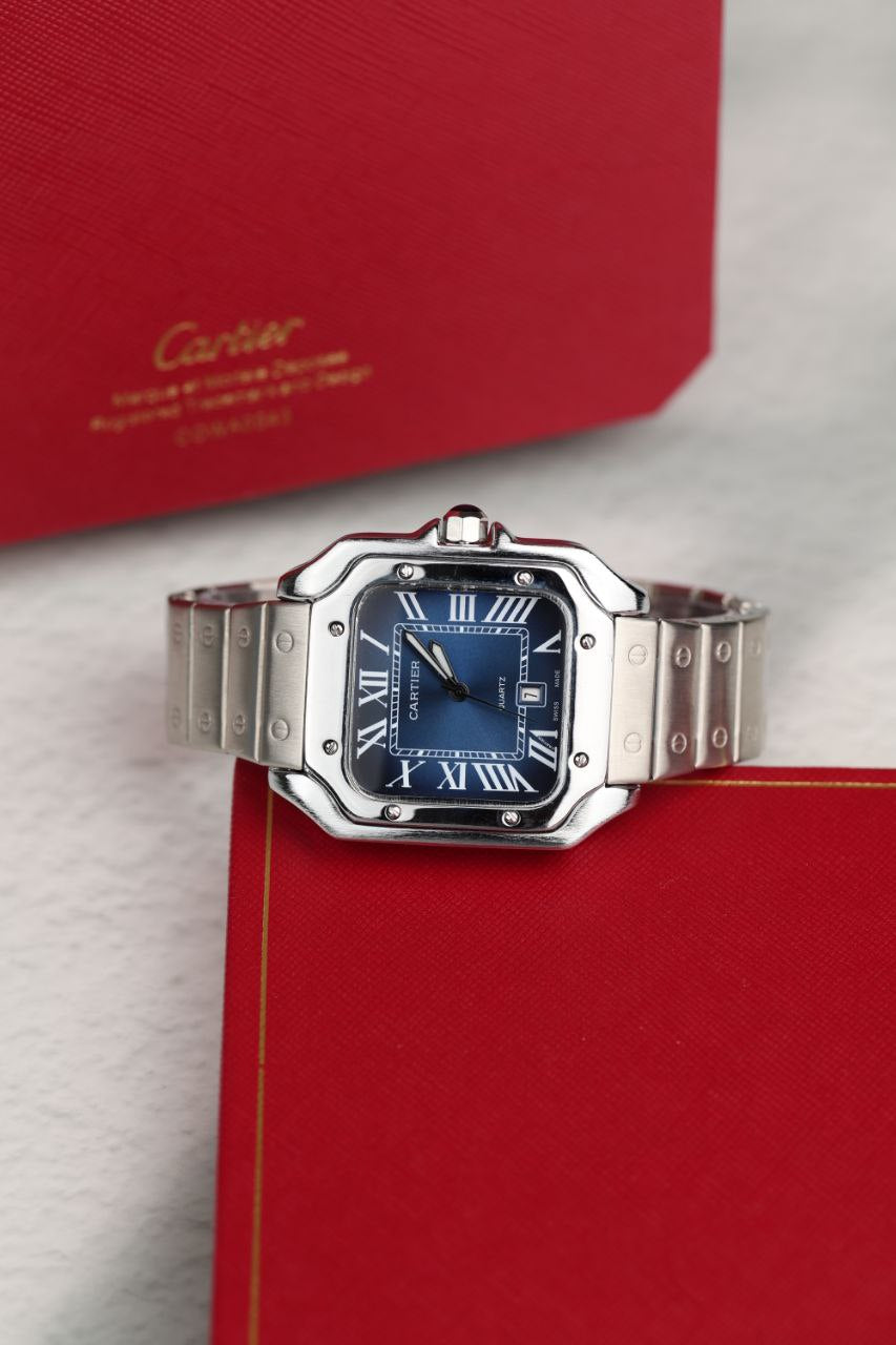 אחת השעונים היוקרתיים ביותר לגברים! קרטייה עם רצועת נירוסטה עמידה בפני חלודה. כל המחוגים הפנימיים פועלים – איכות גבוהה במיוחד. מגיע עם קופסה, שקית וכרטיס אחריות.